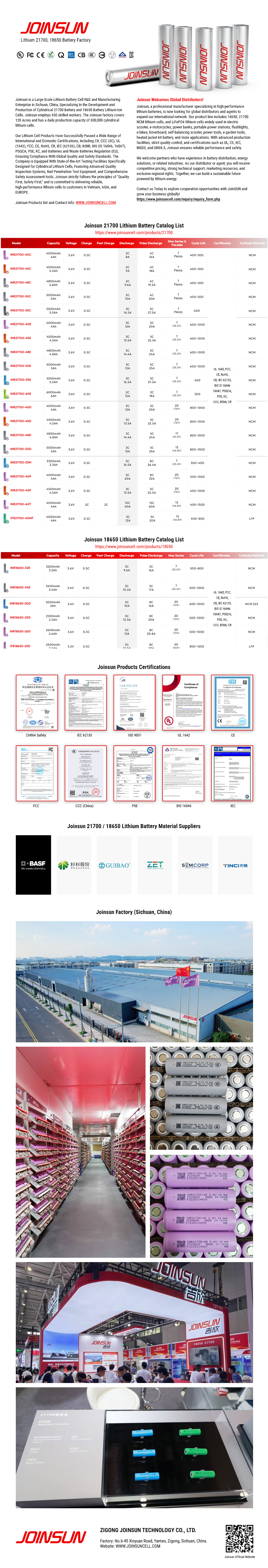 Joinsun 21700 Battery and 18650 Battery Lithium-ion Cells Catalog